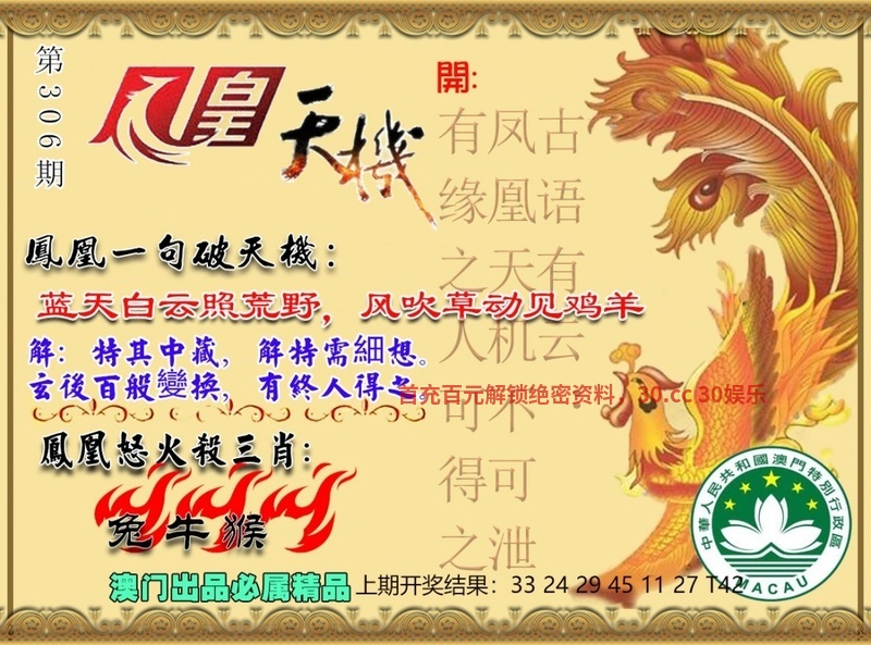 | 306期:九肖 | 鼠虎蛇猴猪牛鸡马龙 | 牛17中 |